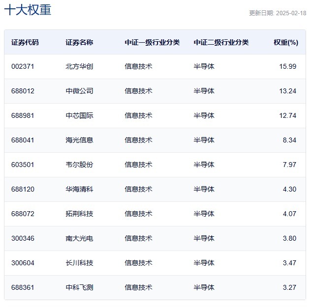 其中指数对中证三级行业中“半导体设备+半导体材料”的持仓占比超67%,重点聚焦半导体设备龙头企业,前十大成份股合计占比近8成,高度集中的指数构成,让产品兼具成长性与弹性。